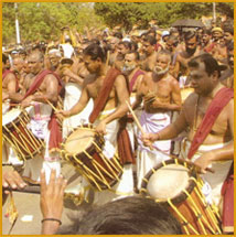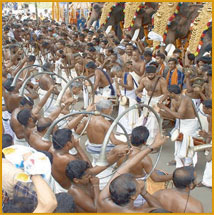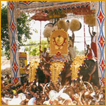 The Thrissur Pooram is one of the most spectacular festivals in the world. In terms of visual splendour, the grand assembly of caparisoned elephants, amazing pyrotechnic displays, spellbinding ensembles of percussion instruments and enthusiastic crowds, there is no match for it. One can't find a festive gathering and celebration on such a scale anywhere else.