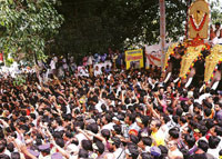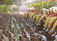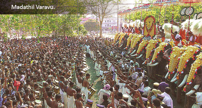 Thiruvambady Temple Situated at Thrissur city 1km towards north from Vadakumnathan, Thiruvambady is the dominant partner of "Thrissurpooram". The main deity is Sreekrishna(Partha sarathy). This temple was in edakkalathur near Guruvayoor and devotees eloped with the idol during a communal rite and handed over to Kachanappilly Namboodiri family in thrissur. Pleased with the bajans by head of kachanappily mana the devi of Kodungallore came to thrissur on his umbrella - is the legend about bagavathy. The participant of the pooram is devi The Devi's Thidambhu with Sreekrishna's Kolam is the uniqueness of this pooram. Other main festivals are "Ekadassy" and "vela"